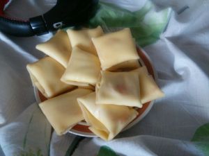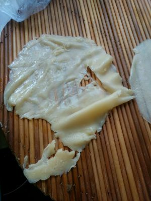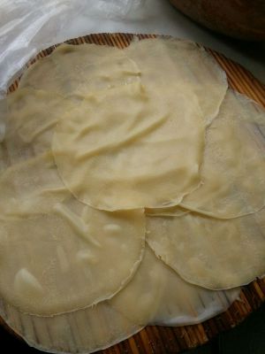 看吧看吧,经过多加练习一定会煎好滴,因为我煎了12张饼皮,而且颜色很淡,所以窝就起了个名字叫白玉12钗(bing)。是不是很有诗意,快夸我,吼吼吼。