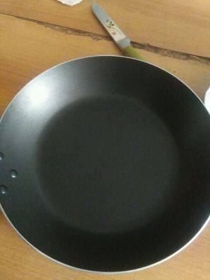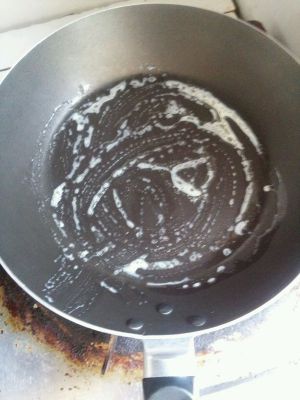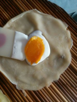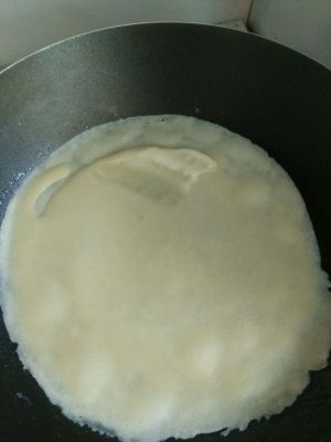 接下来就可以开始煎了,我的锅是宜家不粘锅,非常好用,一次一小张。