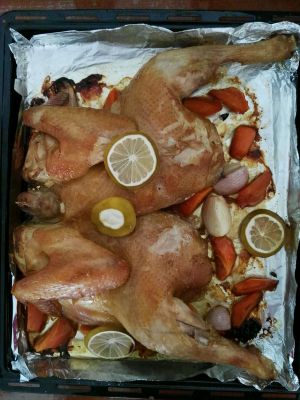 烤箱预热3分钟,200度烤1小时,香喷喷的烤鸡出炉啦。