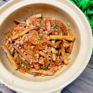 猪肉炒至散,变色后加入一勺子豆瓣酱