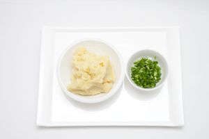 炒制:加热炒锅,倒入色拉油,待油温升至七成热时放入大葱段煸炒,待葱香味出来后改小火,将大葱段用筷子捞出;再将土豆泥倒入锅中,加入香葱末、盐、黑胡椒粉后翻炒1分钟关火即可。