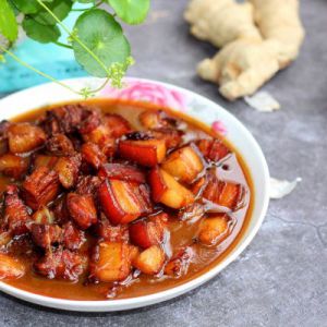 加热水漫过五花肉,适量的盐。少许生抽。一定要加热水,冷水炖出来肉就柴了,30分钟左右,炖到拿铲子能把五花肉的表皮铲掉就好了。