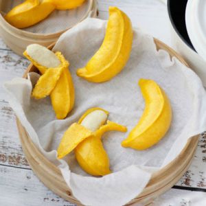 剥开香蕉看一看。这个馒头是不是很有趣呢!