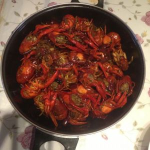 翻炒至变成红色加入盐 酱油 耗油(多放点增加甜味)加水漫过小龙虾 中火闷20分钟加点鸡精 起锅