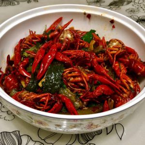 上锅:1、将切好蒜段、姜片、干辣椒上火,有香味后,放入清洗好的虾,爆炒(如果可以,事先用热水抄下)