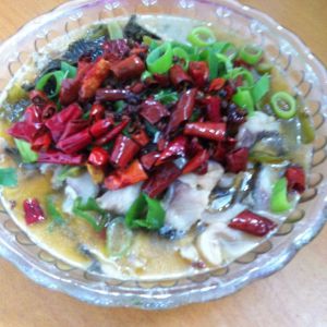 煮熟后,盛出发上花椒,辣椒,葱,锅洗净发油加热,淋上即可