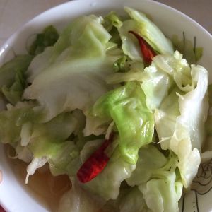 干红辣椒切好~起锅,热油放入包心菜快速翻炒