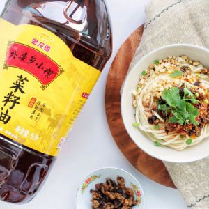 浇入面碗中,拌匀,增添更多美味。非转基因小榨菜籽油保留了地道菜籽油的浓香,提升了菜肴的味道还保留了菜油的营养,既健康又美味。撒上切碎的香菜点缀,即可食用。