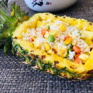 把提前准备好的菜 鸡蛋 菠萝肉 饭 放到一起炒,放点盐