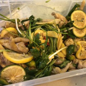 生姜 料酒煮熟鸡脚。煮熟后清洗备用。