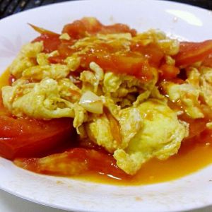 盛出西红柿,放油摊鸡蛋,鸡蛋熟了把西红柿倒进去翻炒20秒左右,装盘。