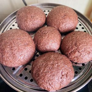 醒发好的面团 在面板上反复揉捏排气 然后分成小块再揉成面团 放入蒸锅 (我没有布 我在帘子上抹了点油 防止粘连) 先别开火 面团再放十分钟二次醒发一下 然后盖盖子开火 大火十五分钟 再闷五分钟就好