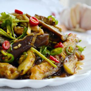 蒸好的茄子放凉,撕成长条,放在盆里备用;