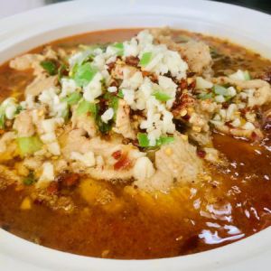 起锅倒入食用油烧热,浇在刚刚摆好的菜上