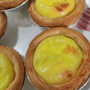 所有材料放入容器搅匀,用漏网过两遍,倒入蛋挞皮内;