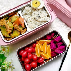 装上打包盒配上米饭,鸡蛋水果。工作餐准备好了