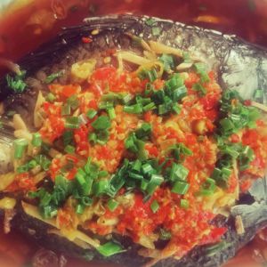上面放野山椒,辣椒酱,姜蒜,浇上蒸鱼鼓油和味极鲜酱油,包起来放烤箱烤25-30分钟