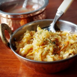 取平底锅少量橄榄油煸香蒜末,加入熬好的腊排骨汤 倒入一碗意大利米。不停搅拌。汤莫过米即可,搅拌过程中汤干后继续加入再搅拌直至米软为止,最后加一点点黄油提香而已。盐可以少量因为腊排骨汤本身有盐味儿。
