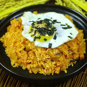 最后将盛出的米饭放上半熟煎蛋、芝麻、海苔碎即可