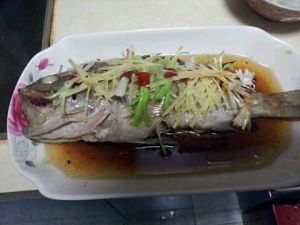 锅内水烧开,将鱼放入蒸7到8分钟即可出锅。鱼换入另一盘内,鱼身上放葱丝姜丝淋热油,四周放李锦计蒸 鱼豉油即可