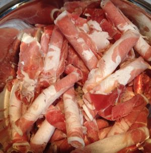 羊肉在室温下提前解冻后放入盐, 一点点糖 ,黑胡椒,玉米淀粉,料酒搅拌均匀后放入冰箱半小时,让其入味。