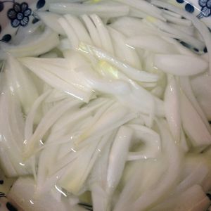 黄洋葱切丝洗净 锅中放少量油先煸炒下乘出待用