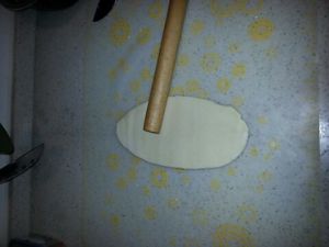 此时面醒好,分成4个挤子,然后分别用擀面帐擀开