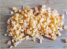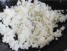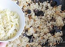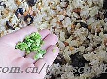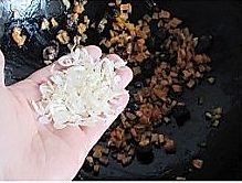 加入一勺拌饭酱,一小把虾米,点入料酒翻炒后取出备用;