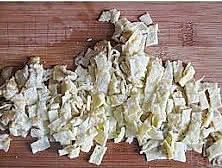 加入前面做好的材料和蛋皮丁翻炒几下;