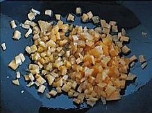 热锅后加入橄榄油,放入胡萝卜丁翻炒;