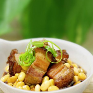 放入炖肉料、酱油、盐、料酒、黄豆,加入水至没顶。