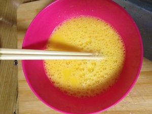 鸡蛋打散,加一点点盐末,加一点点清水,用筷子搅匀。