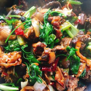葱姜蒜,鸡肉切好焯水,控水,入锅煸炒