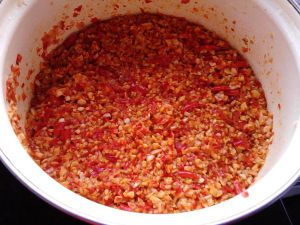 倒入辣椒蒜蓉煮开了马上关火盖上盖子