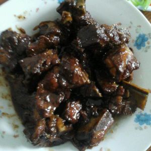 放入排骨,翻炒,加入少许老抽翻炒,放入八角桂皮一起炒