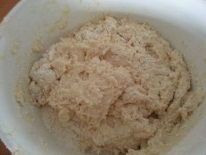 用手尖把黄油与面粉搅拌成面团。