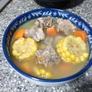 捞出花椒和八角,把胡萝卜玉米下锅一起煮~尝尝汤浓淡