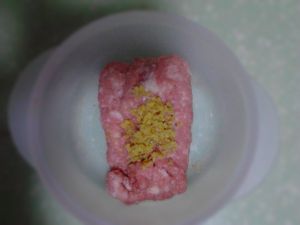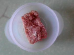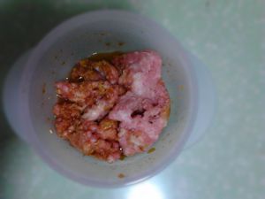 猪肉剁成肉泥。注意不要剁得太烂,否则口感会不好。
