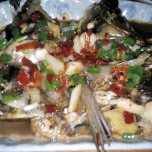 先将鱼头洗干净,装在合适的盘中,在鱼头上抹点盐,料酒,放点姜片大蒜,最后在鱼头上放剁椒(一般都是买的瓶装,可以自己做哦) 放在锅中隔水蒸10分钟左右