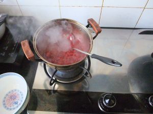PS:多少草莓多少砂糖看自己喜好,我买的草莓比较小,所以我切两刀,一剖四