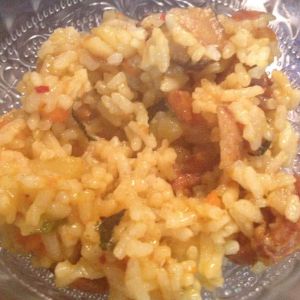 最后一步~把煮好的咖喱倒入剩米的电饭锅里!切记!如果是生米就把水全倒掉,只剩米在里面再倒入咖喱!因为咖喱有汤汁,可以把饭煮熟并且当咖喱汤汁进入饭里,口感是非常棒喔!然后按下煮饭、跳到保温时香喷喷的电锅咖喱饭就好了~