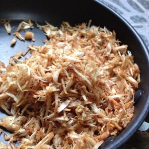 炒锅烧热,不加油,将肉放进去煸干,不断翻炒,至水分充分挥发、肉变成蓬松的肉丝状就完成了。