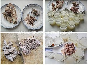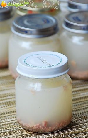 将骨头上的瘦肉拆分下来,切碎分装在小瓶中,放入冰箱冷冻,随吃随取。