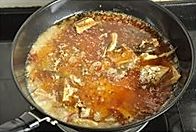 把草鱼倒进米酒中,放些麻辣鲜或其它自己喜欢的调味料,转小火煮2分钟使鱼块入味,同时使锅中的水分蒸发出。(此时可以尝尝咸淡,加糖或加盐来调和到自己喜欢的口味程度)。如果米酒不能没过鱼块,可以往锅里再添加食用油和麻油,千万不能加水!最后关火,彻底摊凉酒糟鱼。