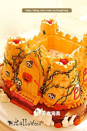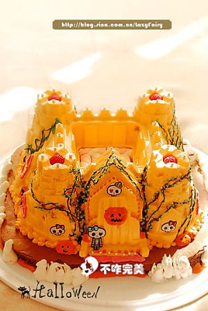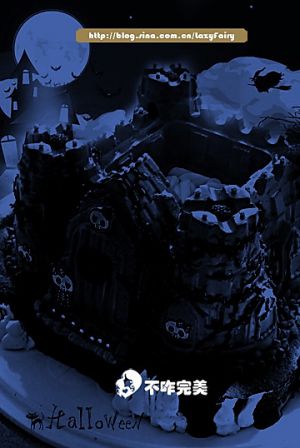 然后就剩下装饰了,先打发一些淡奶油,装裱花袋里调色,然后装饰成喜欢的样子就OK了。城堡正中心其实可以放些水果吧,家里没有什么可放的东西我就随便挤了点奶油,摆了点棉花糖。正门口的骷髅偷懒用的贴纸。用的雀巢淡奶油,裱花还是不给力,不然画画也美的。最后PS两张暗黑有气氛的。