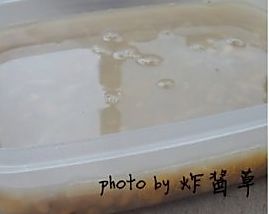 将煮好的皮冻汁捡出生姜装入容器中放凉即可,