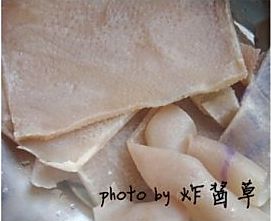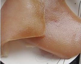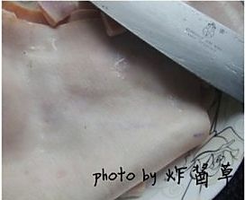猪皮用刀里外刮干净,有猪皮的地方用聂子聂掉