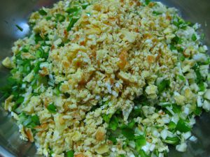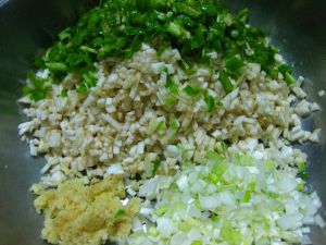 1个鸡蛋炒熟,切末。一起拌匀。