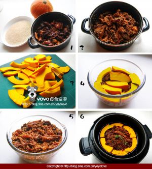 依次南瓜、米粉肉、南瓜、米粉肉,铺满整个大碗。