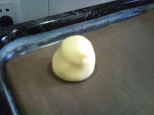猫的形状就底平上圆的椭型,捏两个耳朵出来就OK了.